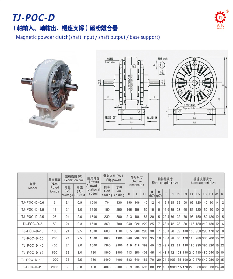 POC-D带机械底座磁粉离合器防止由于滑差所致的发热现象通常连续滑动时摩擦部分免不了会发热,甚至烧毁。但是本设备具备完备的散热装置,长时间运转也不会过于发热,而且使用寿命长。
