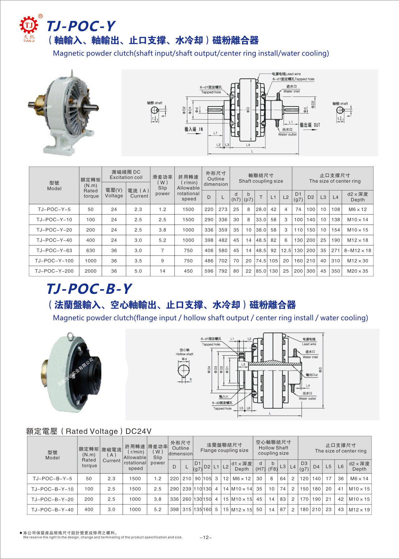 POC-Y水冷磁粉离合器特性