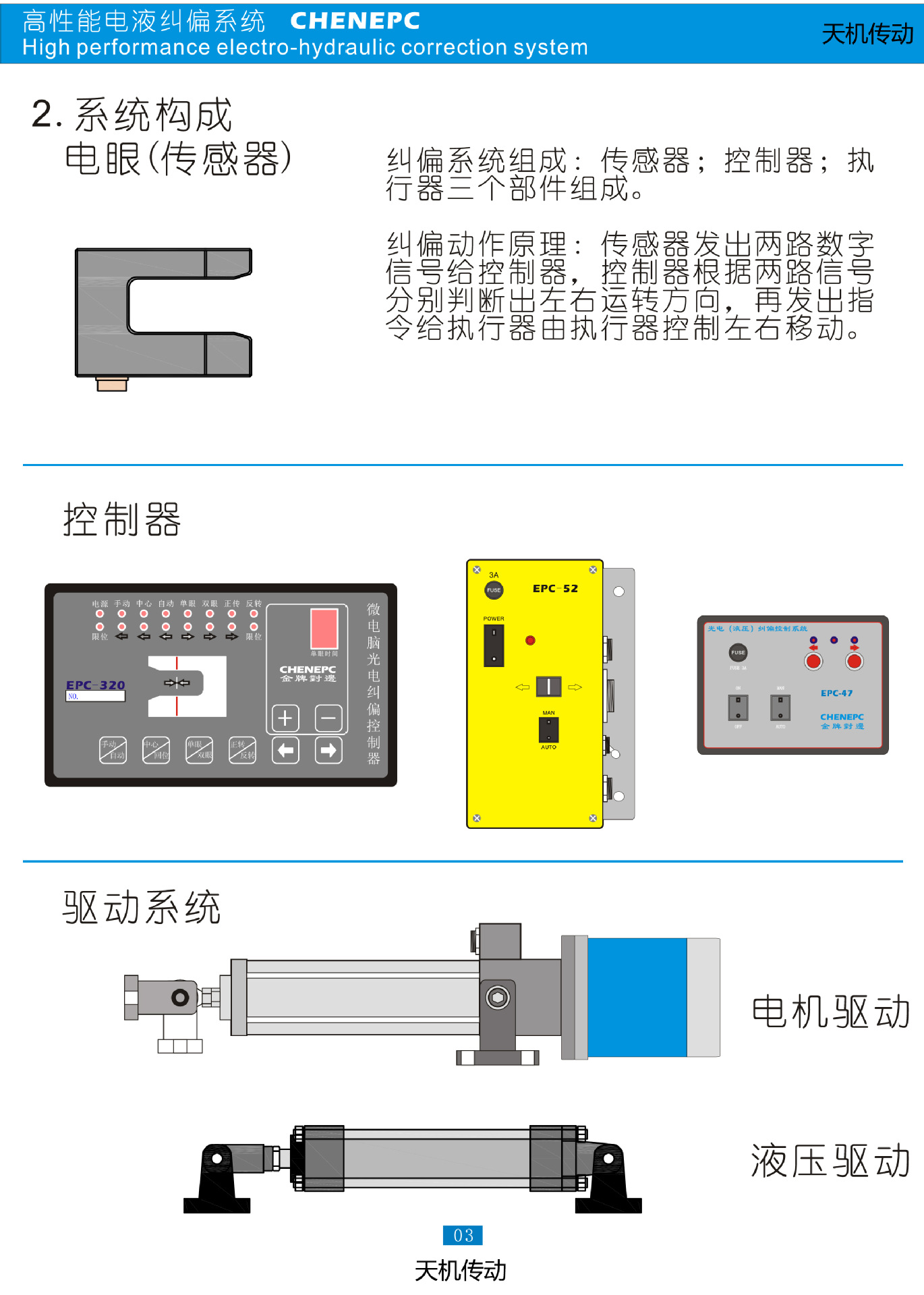EPC-320气压纠偏系统又称电液纠偏机,均用光电检出,油压驱动,对透明料、不透明料、半透明料、纲格料、均可检知修正。 应对速度:0.01秒以内。zui大负荷可由3顿-20顿多种选择。