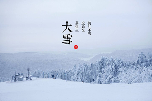 大雪时节有三候:"一候鹖鴠不鸣"意思是大雪交节之后,天气寒冷,鹖鴠这种鸟便敛息摒声,不再鸣叫。"二候虎始交"意识是此时是阴气最盛时期,但盛极而衰,阳气已有所萌动,老虎开始有求偶行为。"三候荔挺出"意思是"荔挺"是兰草的一种,形式蒲草而较小,也感到阳气的萌动而抽出新芽。