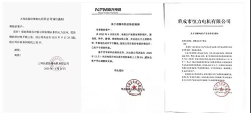 受原材料价格上涨影响,新一轮的涨价潮又来了。国内多家企业发布涨价函,12月1日起将对多个产品系列的价格进行上调,上调幅度在5-8%左右。年疫情原因以及国际贸易关系,造成市场上铜、矽钢等产品产量偏紧。铁、铝方面也同样出现供应紧张的局面。